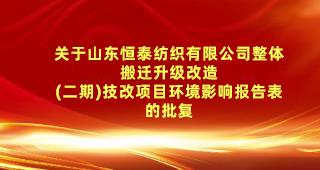 關于山東恒泰紡織有限公司整體搬遷升級改造 (二期)技改項目環境影響報告表的批復